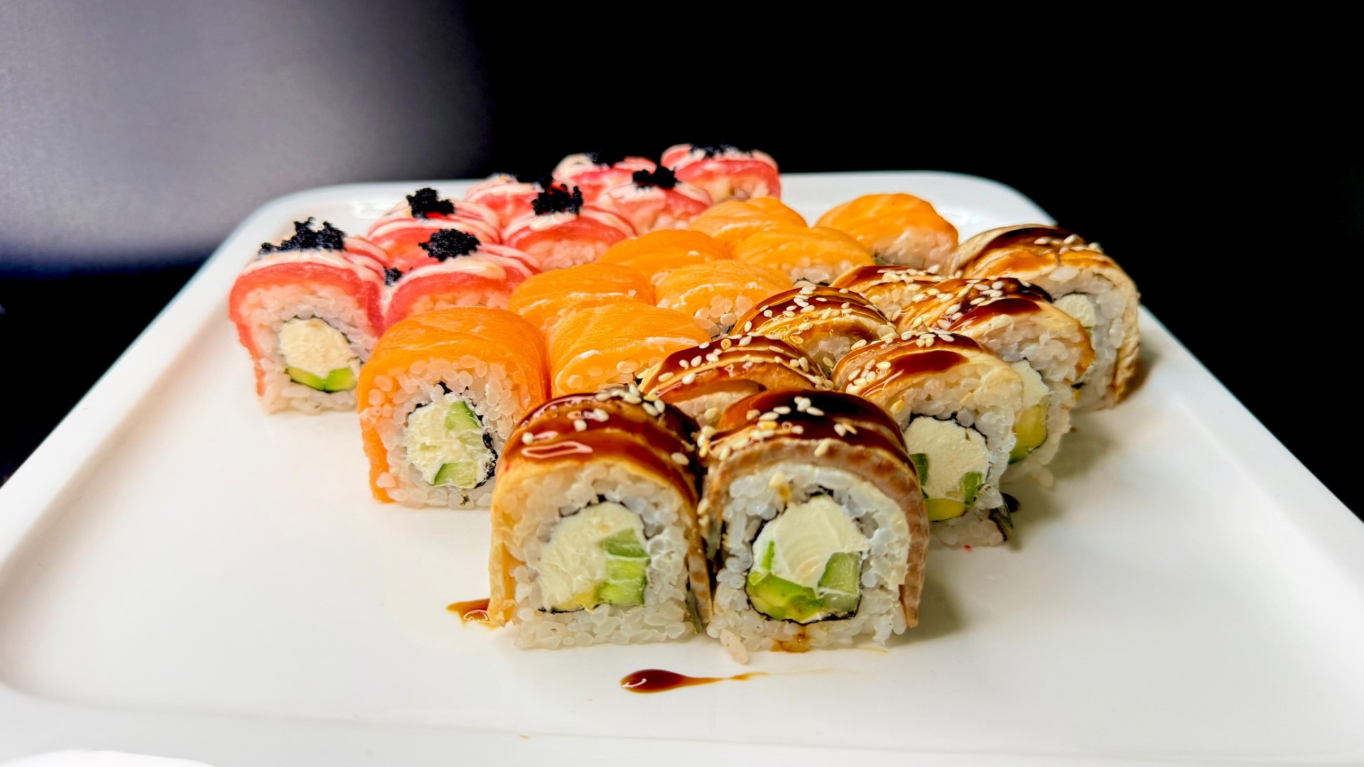 Филадельфия с лососем 8шт, Филадельфия с угрем 8шт, Филадельфия с тунцом 8шт.