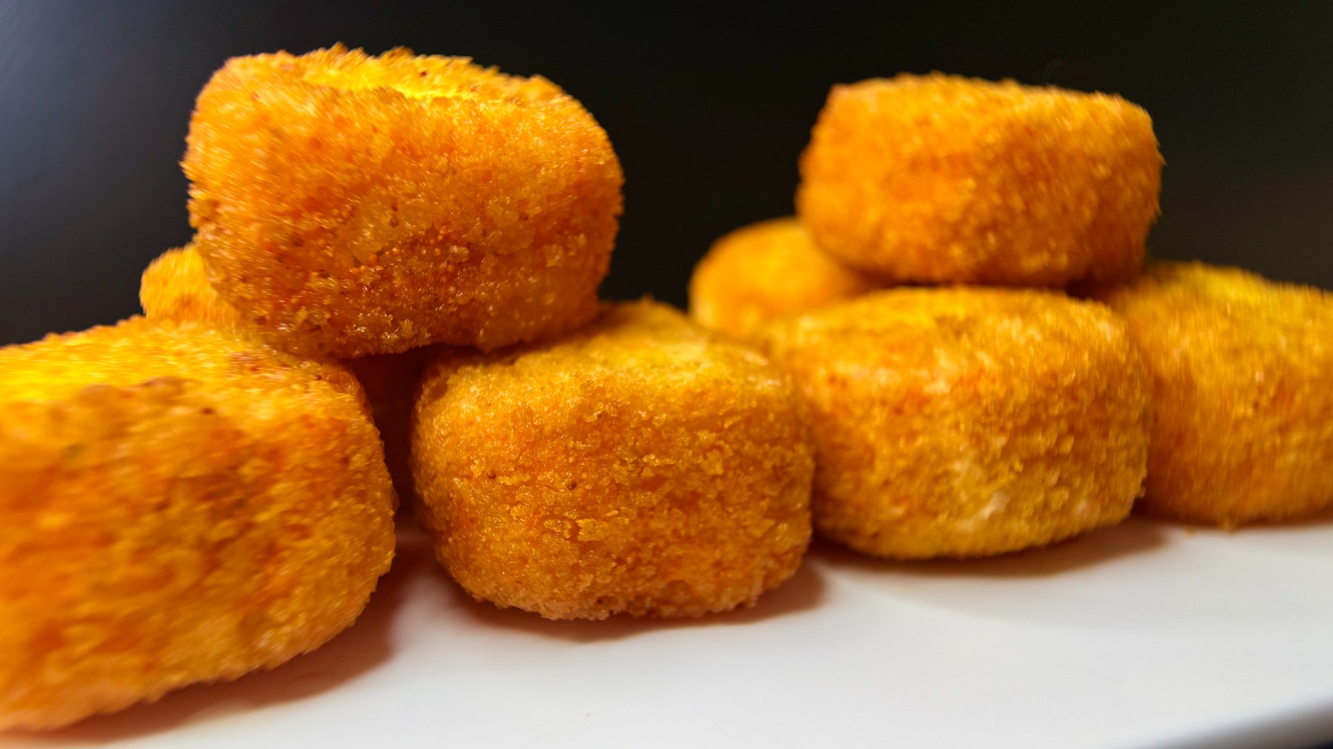 Лосось охлажденный, авокадо, сыр творожный крем-чиз, икра масаго, сверху: кляр, сухари панировочные. вес: 270 гр.
