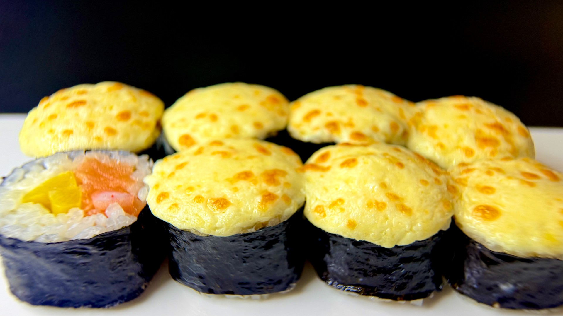 Лосось охлажденный, креветка тигровая, дайкон маринованный, майонез. сверху: фирменная шапочка. вес: 260 гр.